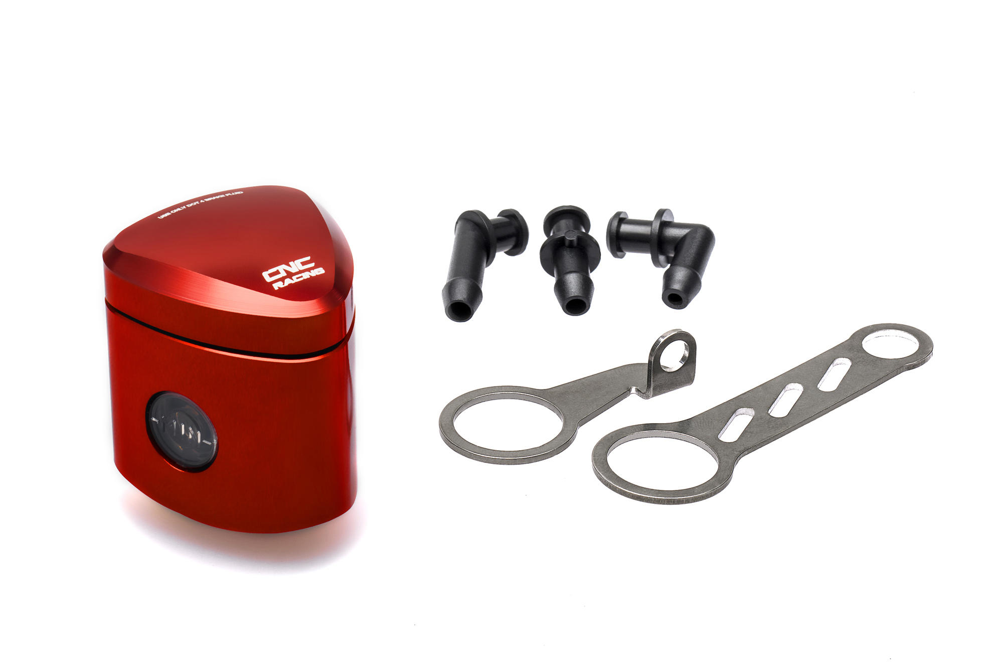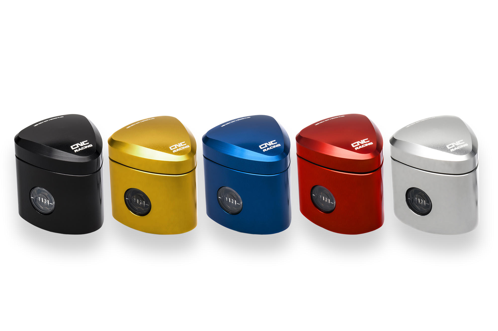 Fluid reservoir CNC machined from light alloy billet and then given a coloured anodized surface finish, which, in addition to coming in a wide range of colours, delivers quality and lasting service life.