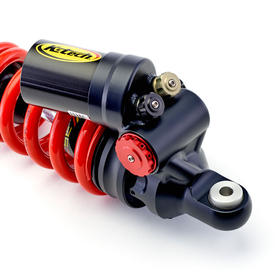 The K-Tech DDS “Pro” rear shock has been designed for use at the highest level of racing and developed in major championships around the world. Like all other K-Tech products it has been designed and manufactured in the UK using the latest design software and highest grades of materials. As you would expect from a high quality racing product, the DDS “Pro” features compression and rebound damping adjustment, length adjustment and hydraulic spring preload adjustment. It also features our unique ByPass Valve adjuster which controls both compression and rebound damping adjustment to assist with chassis control at low velocity shock movement to enhance tyre feel and grip. The DDS system uses a smaller piston rod which keeps the system more stable over a wider temperature range due to its small displacement. Damping is controlled by a 32mm piston which allows the use of larger shims for improved feel.